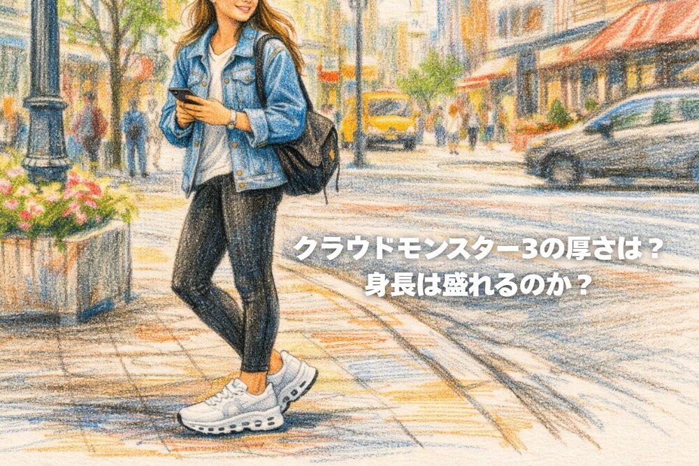 この記事では、クラウドモンスター3の厚底感をわかりやすく整理しながら、どのくらい盛れて見えるのか、普段履きしやすいのかまで、やさしく解説します。