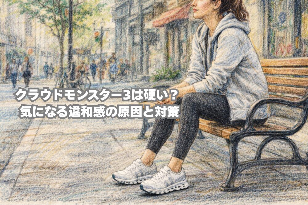 クラウドモンスター3を履いて「硬い」と感じる声も一定数見られます。ただし、その硬さは、単純にクッションが足りないという意味ではないことが多いです。実際には、沈み込みすぎない安定感や、前へ転がるような進みやすさを強く感じて、「やわらかい厚底」を想像していた人ほどギャップが生まれやすいです。