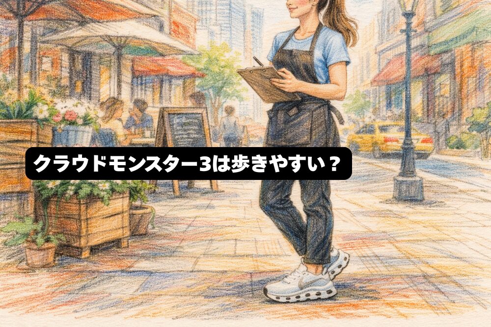クラウドモンスター3が気になっている人の多くは、「走るための靴を歩く用途で選んでも大丈夫なのか」と少し不安を感じていると思います。結論を先にお伝えすると、クラウドモンスター3はランニング用をベースにしたモデルですが、歩きやすいと感じる人もおり、立ち仕事でも条件次第で候補になりうる一足でしょう。