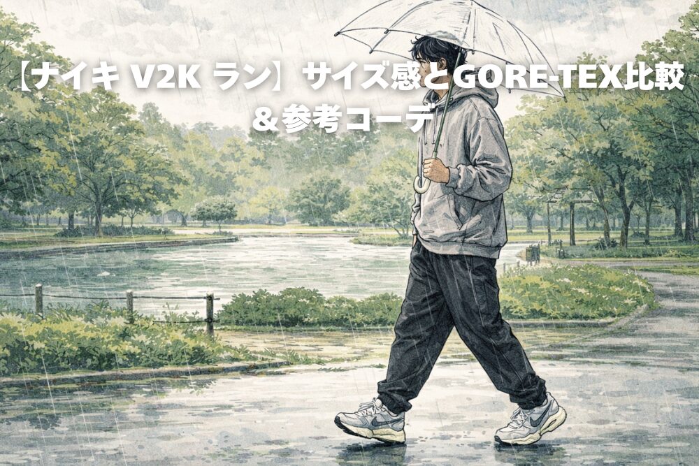 ざっくりまとめると、「軽さと通気性重視なら通常V2Kラン」、「天気を気にせず履きたいならGORE-TEXモデル」という棲み分けです。どちらにしても、ナイキ V2K ラン サイズ感が合っていないと快適さが一気に落ちるので、次の章でしっかり見ていきます。