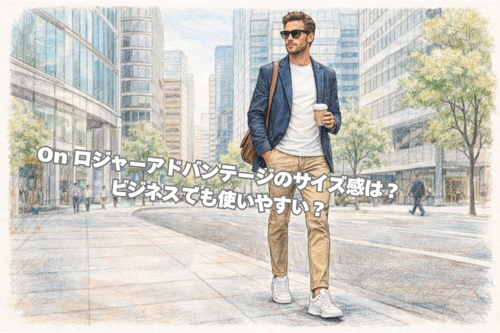 on ロジャーアドバンテージのサイズ感とビジネスでの使いやすさをひと言でまとめるなら、見た目はすっきりしていて大人っぽく、履き心地は硬すぎず、通勤にも休日にも取り入れやすい一足です。